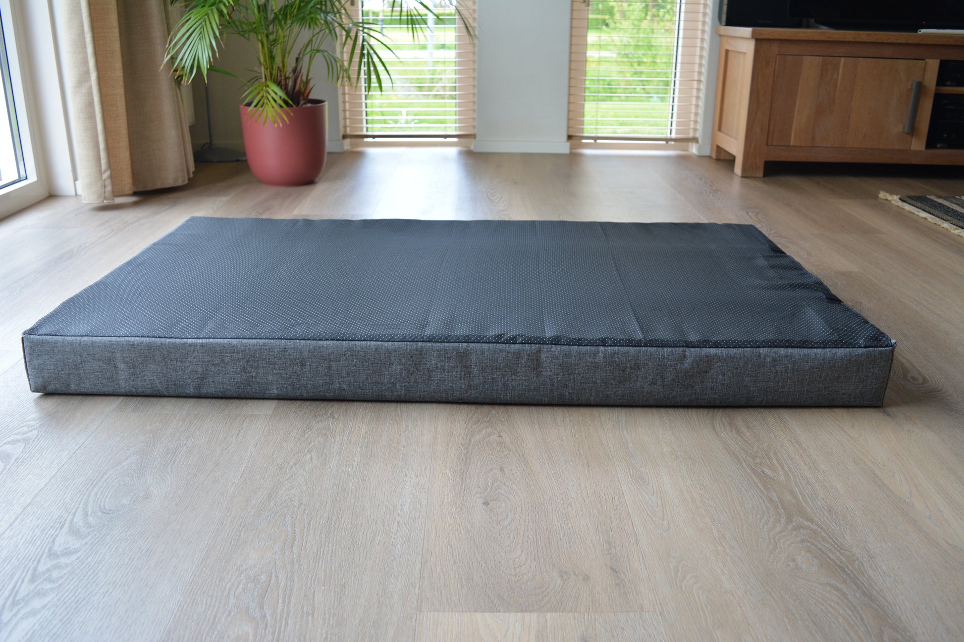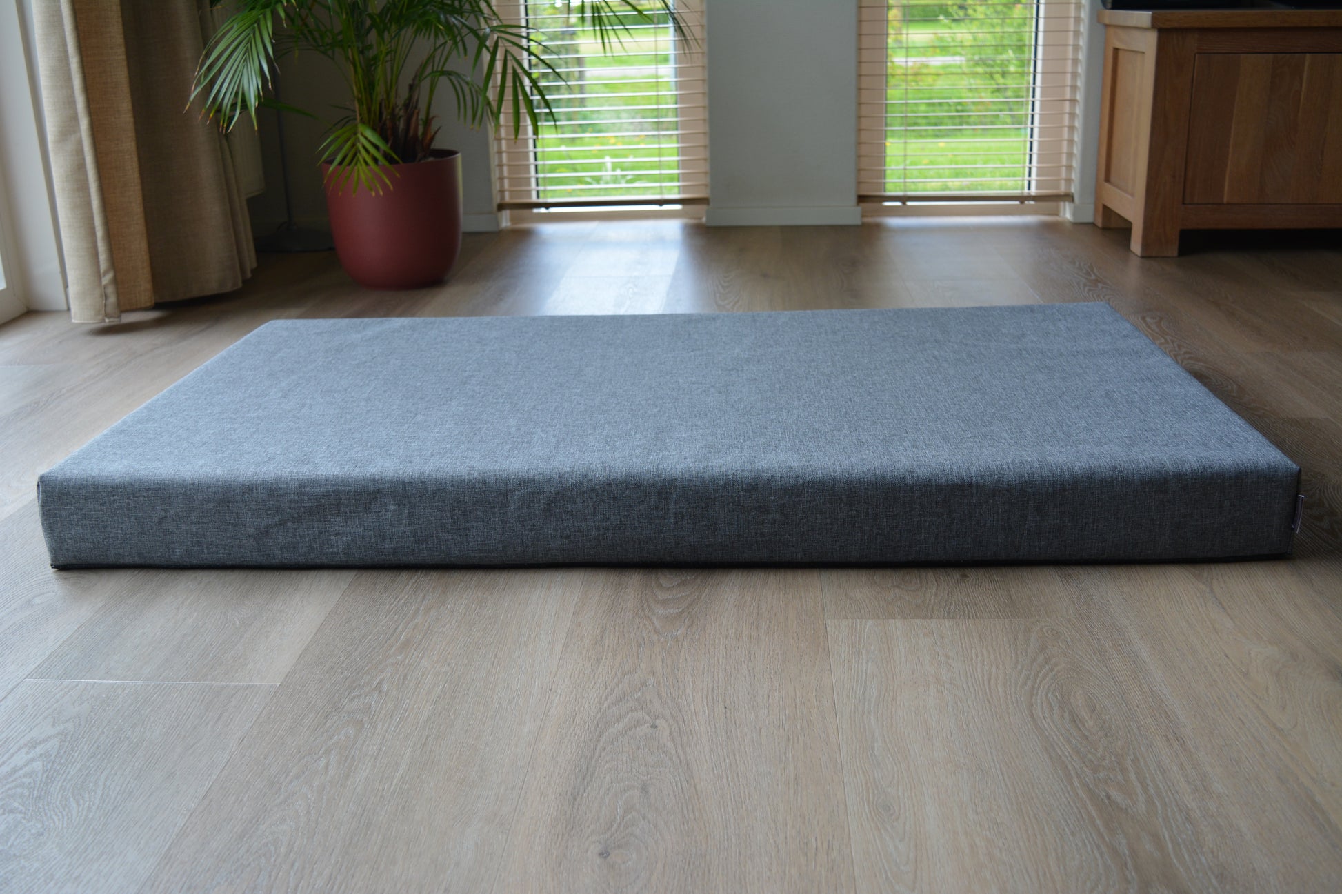 Naast het sterkere frame, zorgt ook het dikkere matras voor meer draagkracht van de lattenbodem. Hoe precies? Een hond draagt relatief veel gewicht op een klein oppervlak (haar pootjes) als ze staat. Als jouw hond schoenmaat 46